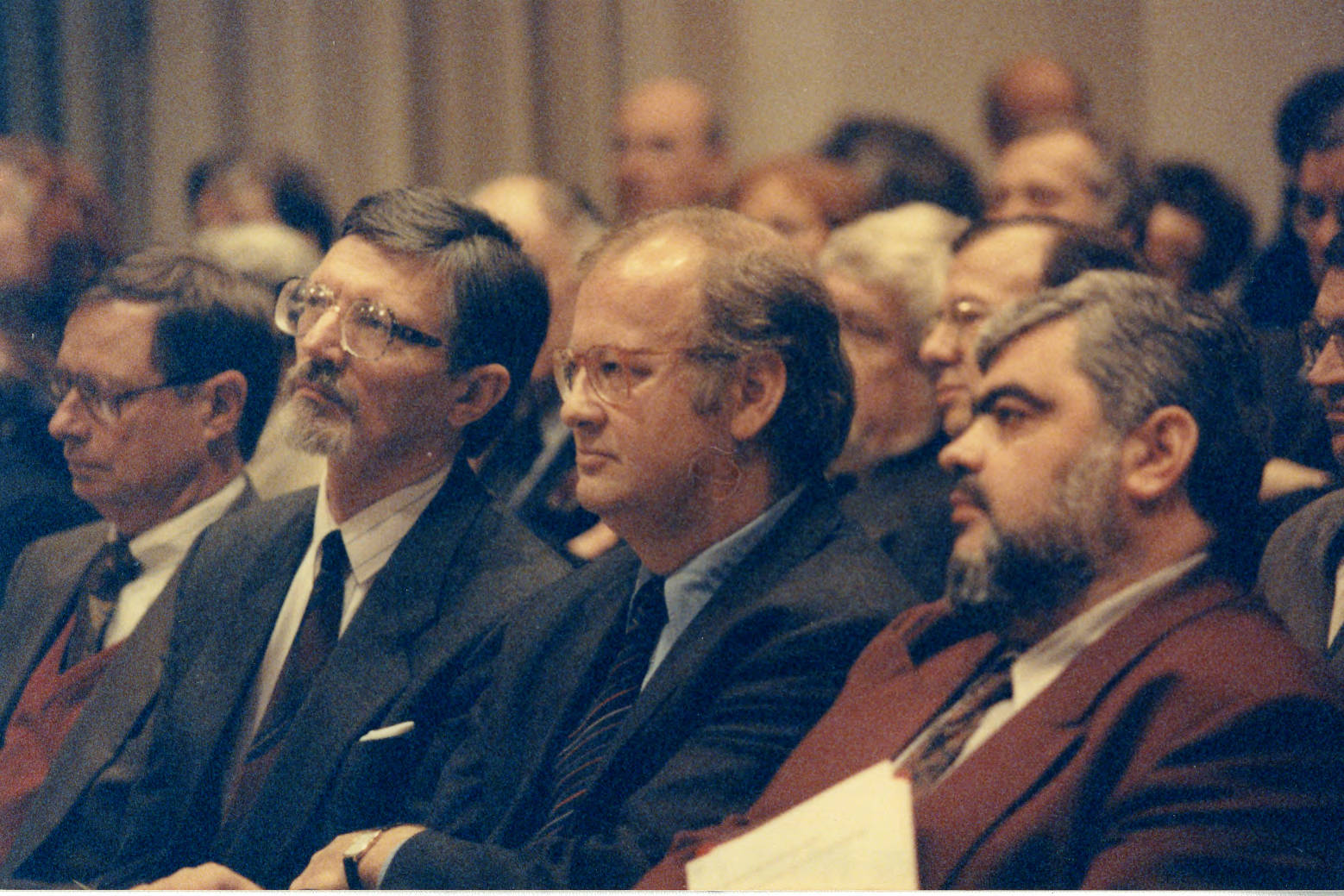 From right in foreground, award winner Andre Pleșu, unidentified, award winner Alexander Gavrilov, and Institute Director Phillip Griffiths are among those attending the presentation in Berlin of the first New Europe Prize for Higher Education and Research. The Prize was part of an initiative by a group of six scholarly institutes in Europe and the United States (including the Institute for Advanced Study) to encourage the establishment of similar institutes in the countries of Eastern Europe and the former Soviet Union. Gavrilov was a Member of the Institute's School of Historical Studies during the 1991-1992 academic year.