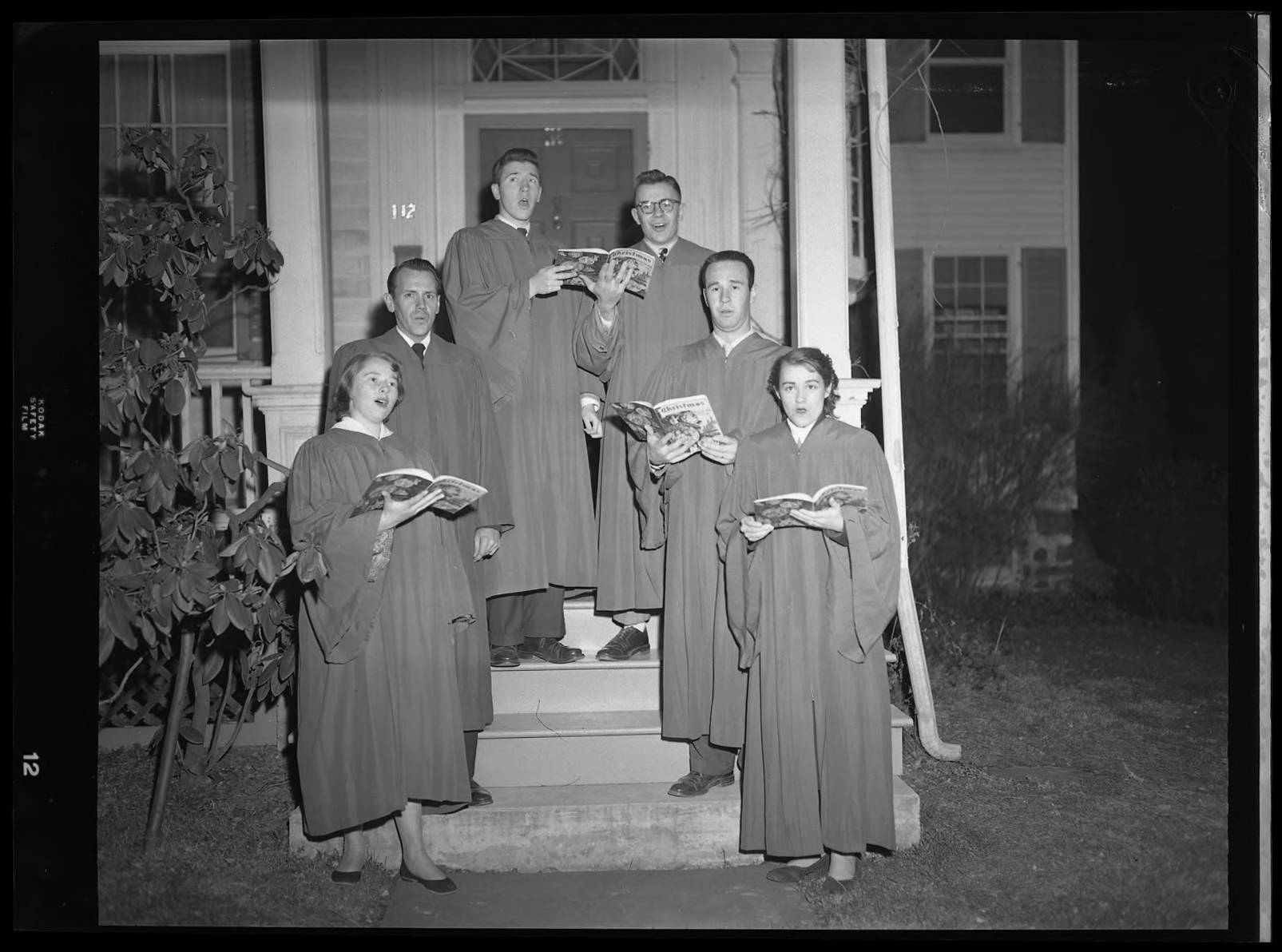 Westminster Choir College students Christmas caroling in front of Albert Einstein's home at 112 Mercer Street in Princeton, New Jersey.