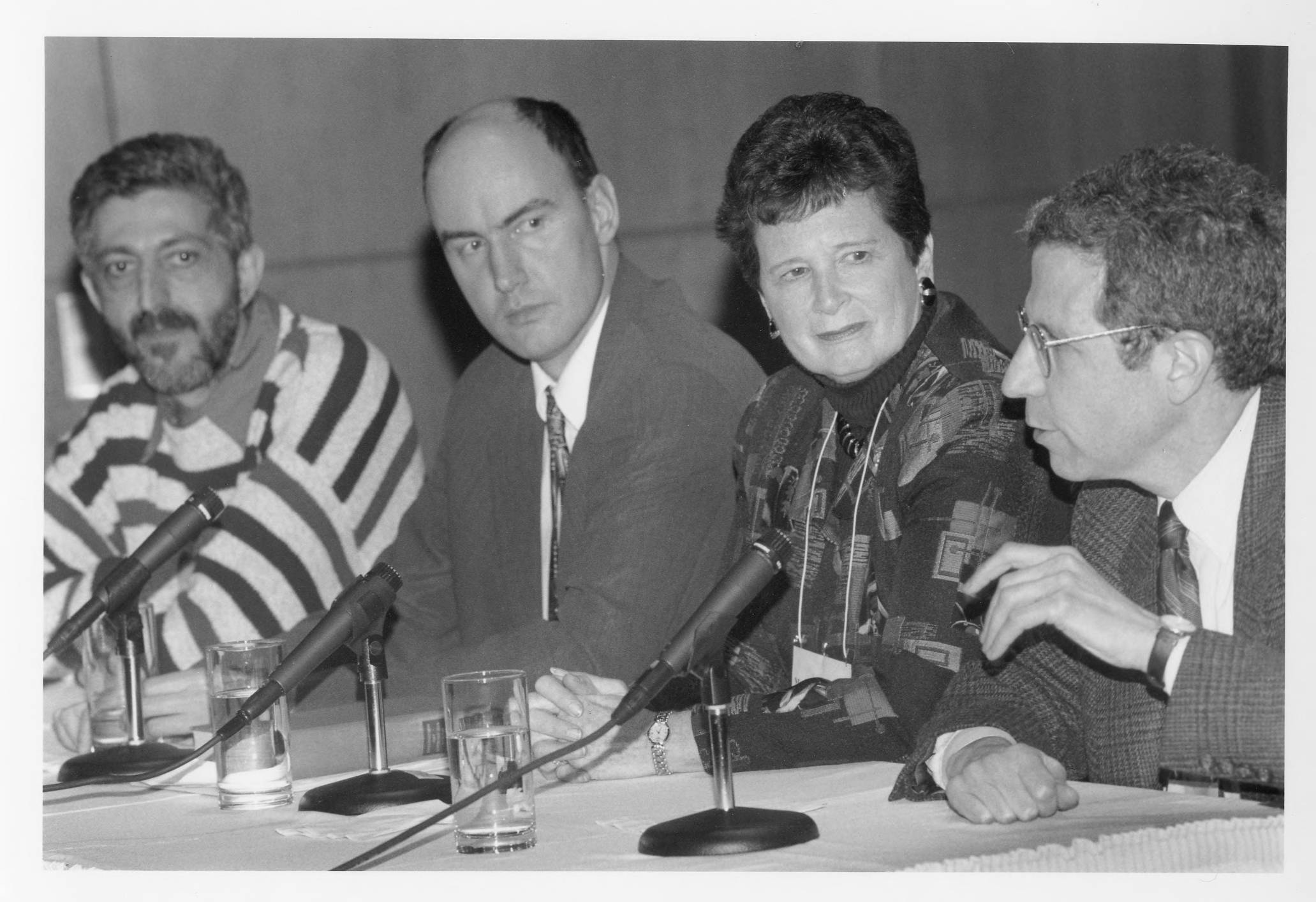 Panelists for the conference "Strategy, Competition and Coordination: Game Theory after Half a Century" held at the Institute for Advanced Study include three Faculty members (l. to r.): Avi Wigderson, Martin Nowak, and Eric Maskin representing, respectively, the Schools of Mathematics, Natural Sciences, and Social Science. Second from the right is IAS Trustee and conference moderator Marina von Neumann Whitman, daughter of John von Neumann, who was among the earliest Faculty appointments to the Institute and a seminal figure in game theory.
