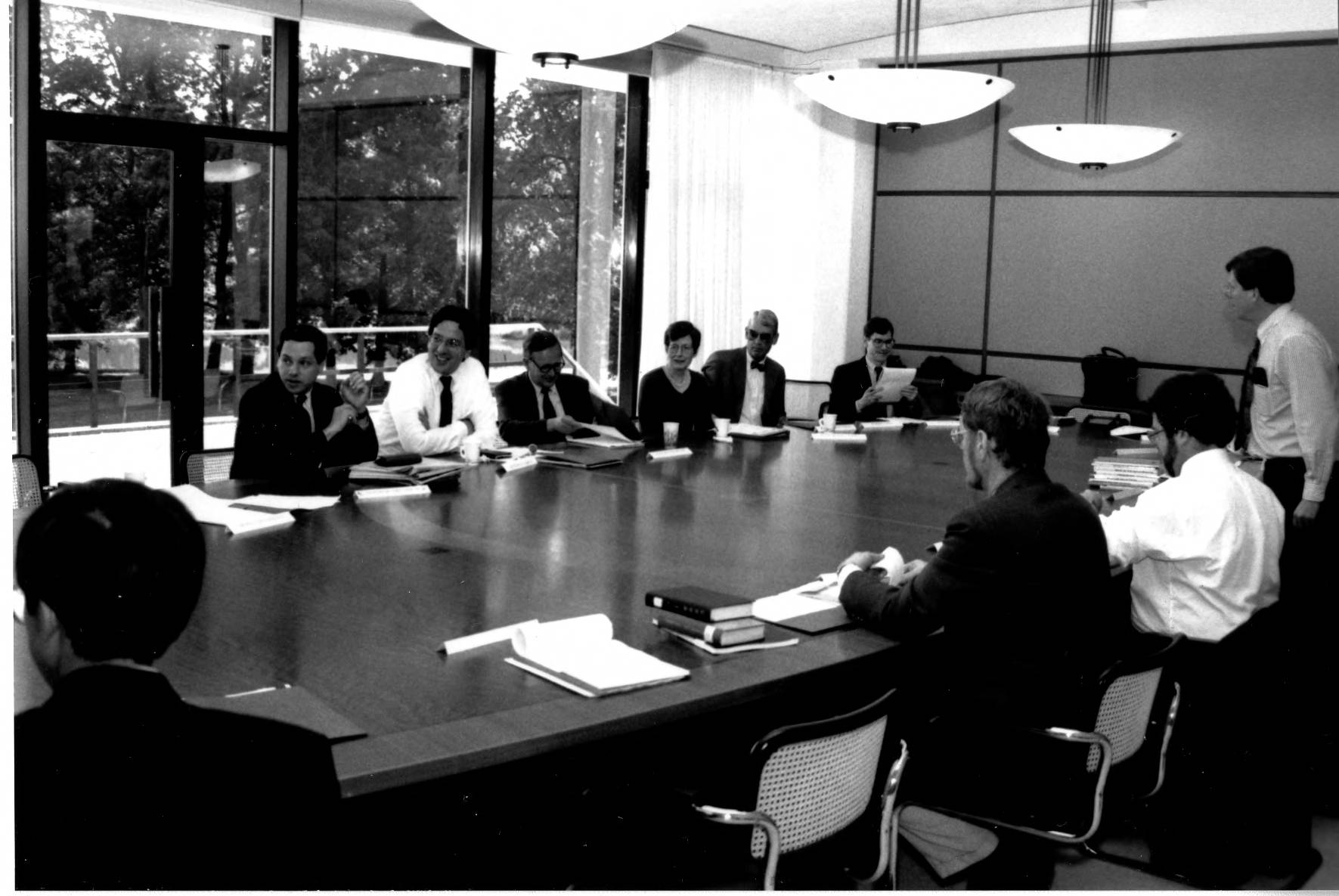 In the White-Levy Room on the Institute for Advanced Study campus, one of the sessions of the June 9-10, 1994, seminar entitled "Force in History." The seminar, supported by the School of Historical Studies (SHS), was chaired and moderated by SHS Faculty member Peter Paret.