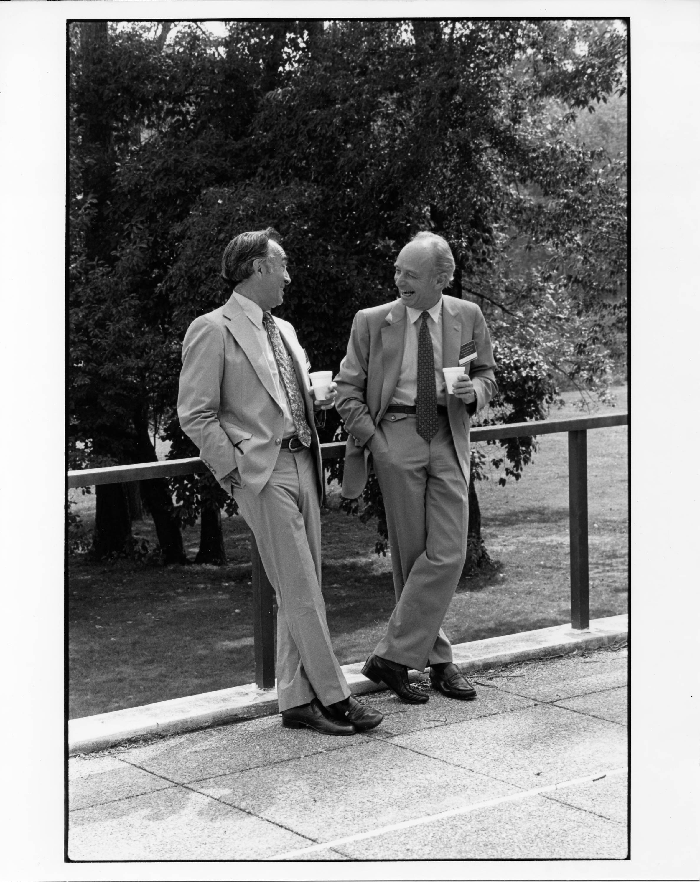 Harry Woolf and unidentified during a break in the Humboldt Symposium.