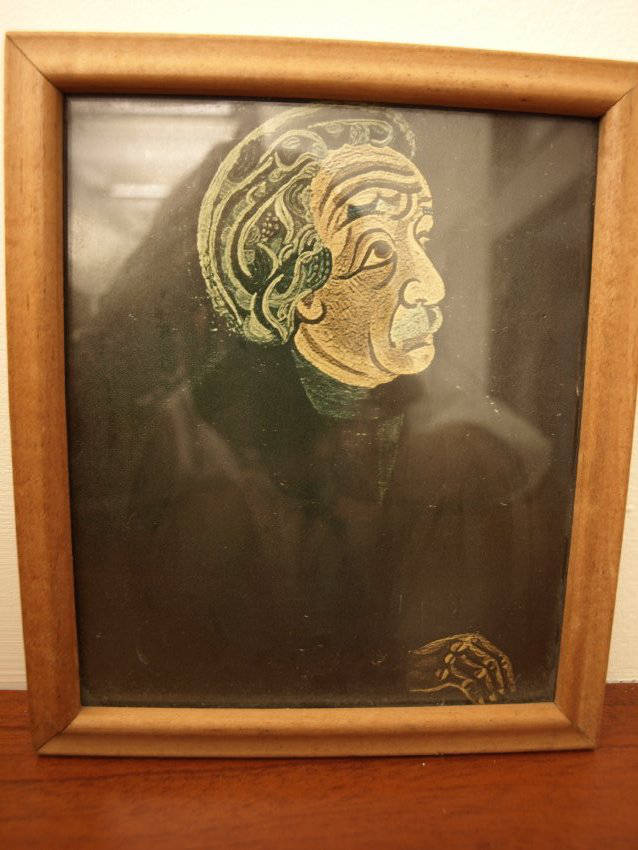 Oil portrait, (possibly self portrait similar to AA2010.0244) of Paul Winteler who was married to Einstein's sister, Maja; portrait is of a man with jacket and tie looking straight at the viewer; background if of trees and houses; see file; red tag #7 on the reverse.