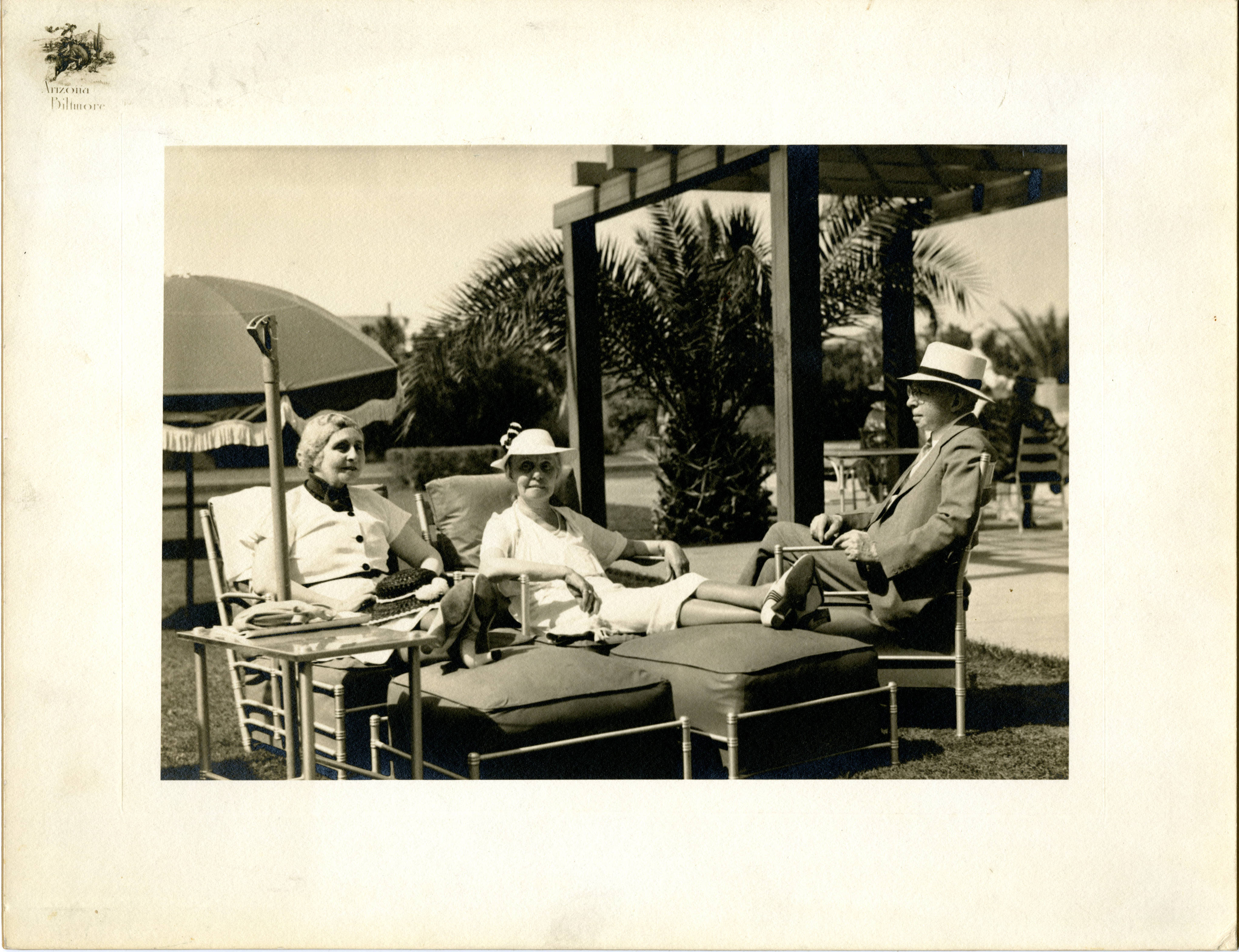 Louis Bamberger, Caroline Bamberger Fuld and their sister at the Arizona Biltmore hotel in Phoenix, Arizona.