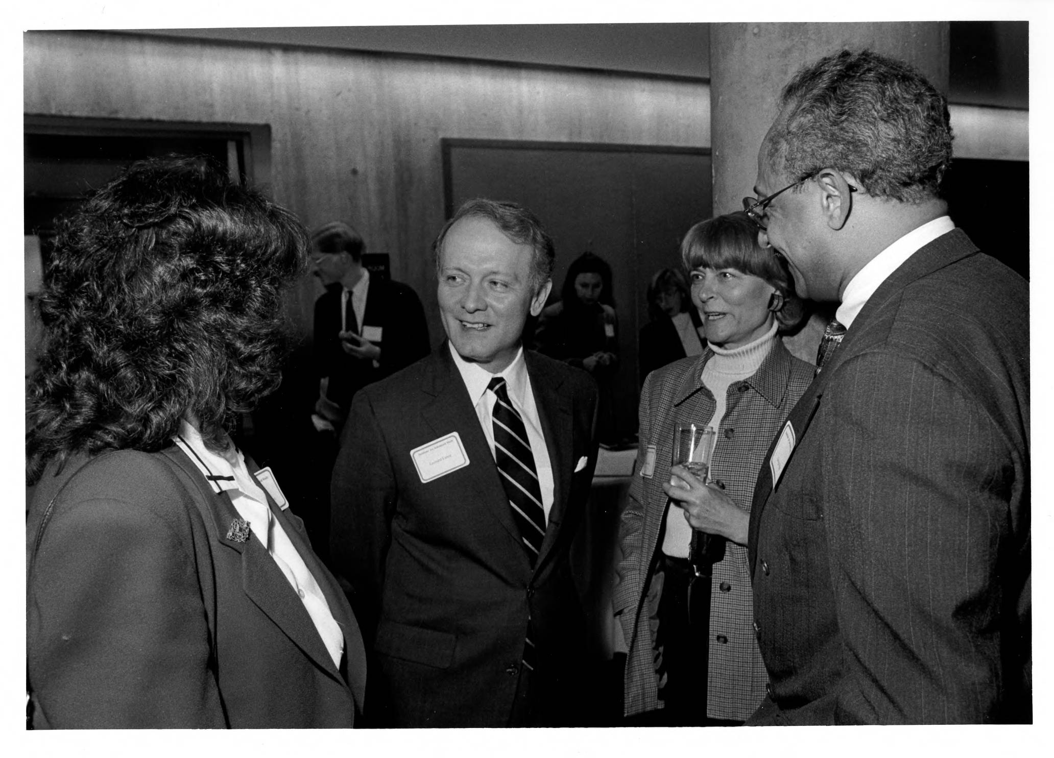 From right to left, George Pruitt, School of Historical Studies Faculty member Patricia Crone, Leonard Lance, and an unidentified woman speak together at an Institute event honoring New Jersey state Senator Jack Ewing.