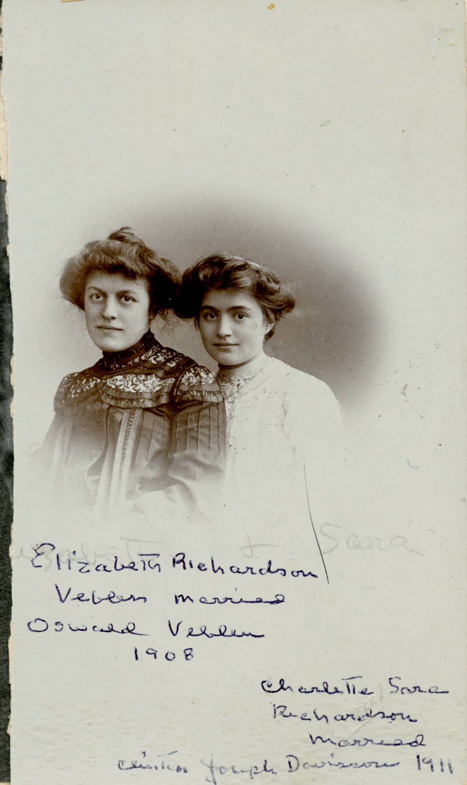 Elizabeth Richardson, left, married Oswald Veblen in 1908. Her sister, Charlotte Sara Richardson, married Clinton Joseph Davison in 1911.