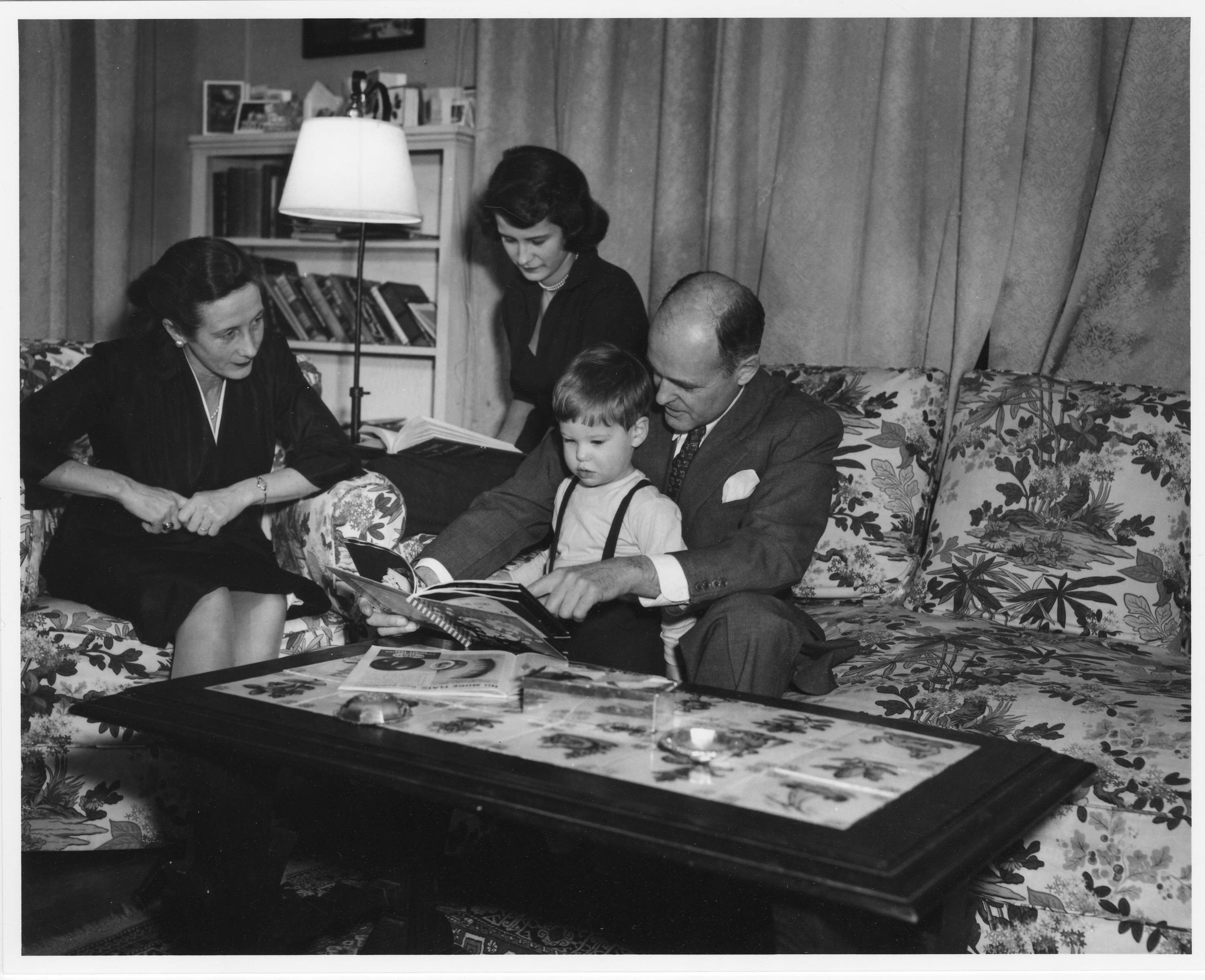 School of Historical Studies Faculty member George Kennan and family in living room.