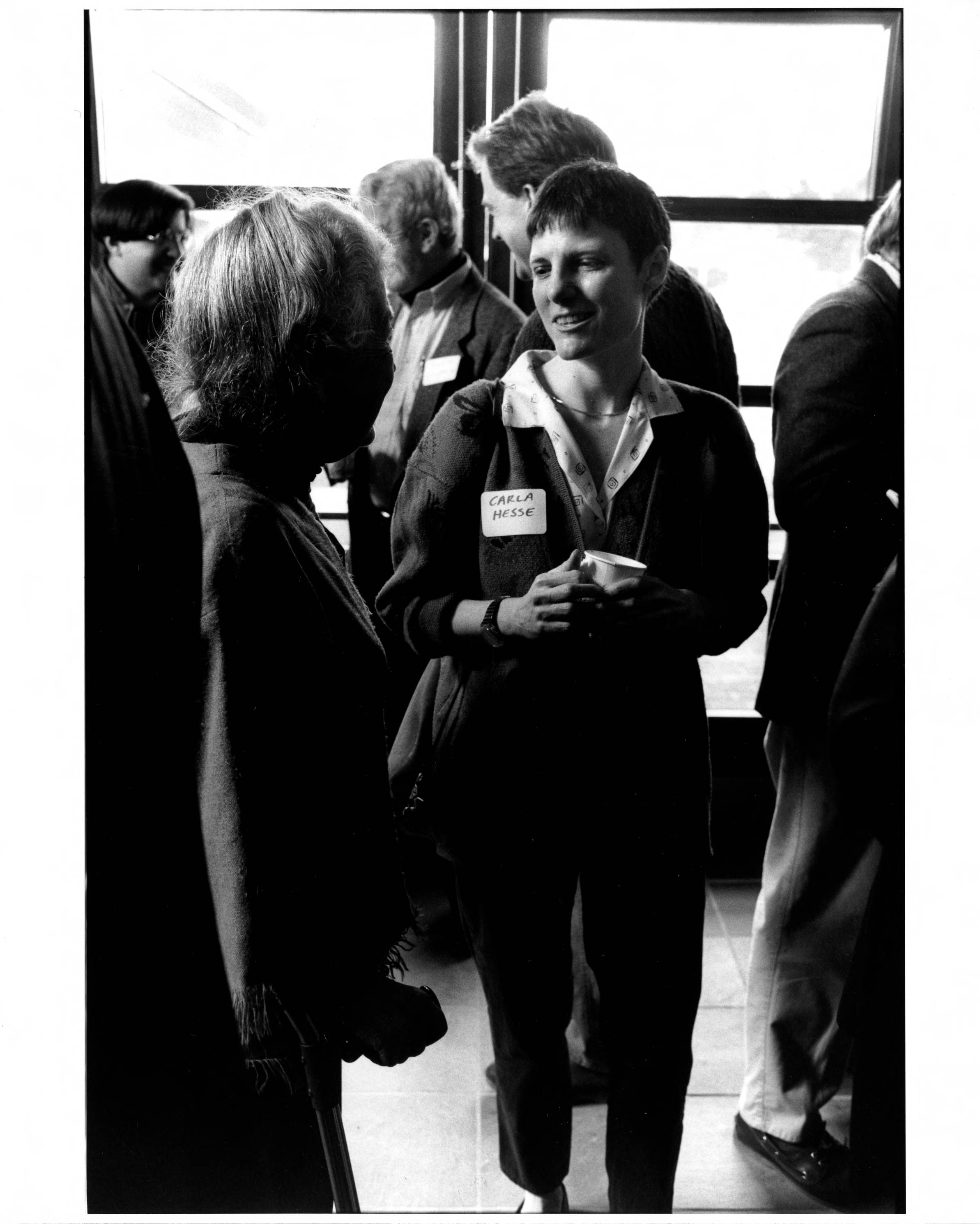 Conference participant, Carla Alison Hesse (center), and unidentified others at the March 12-13, 1993, event held at the Institute for Advanced Study on "The History of War as Part of General History." School of Historical Studies Faculty member Peter Paret chaired the conference.