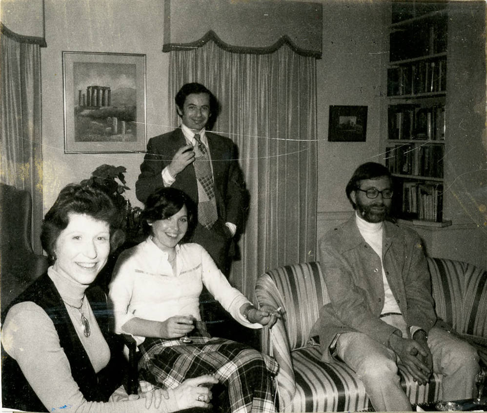 Attending a social gathering at the home of Louise and Marston Morse are (l. to r.): Tilla Milnor, Welleda Silva, Michael Collins, and School of Mathematics Faculty member John Willard Milnor. Most of those attending this event are affiliated with the Institute's School of Mathematics.