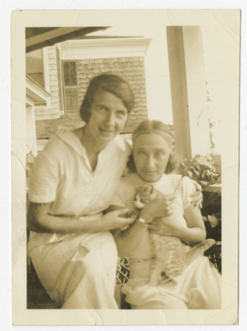 Albert Einstein's secretary, Helen Dukas (left), and his stepdaughter, Margot. There are two copies of this print in the collection and one notes on the back that the location is Watch Hill, which various sources indicate is in Rhode Island.