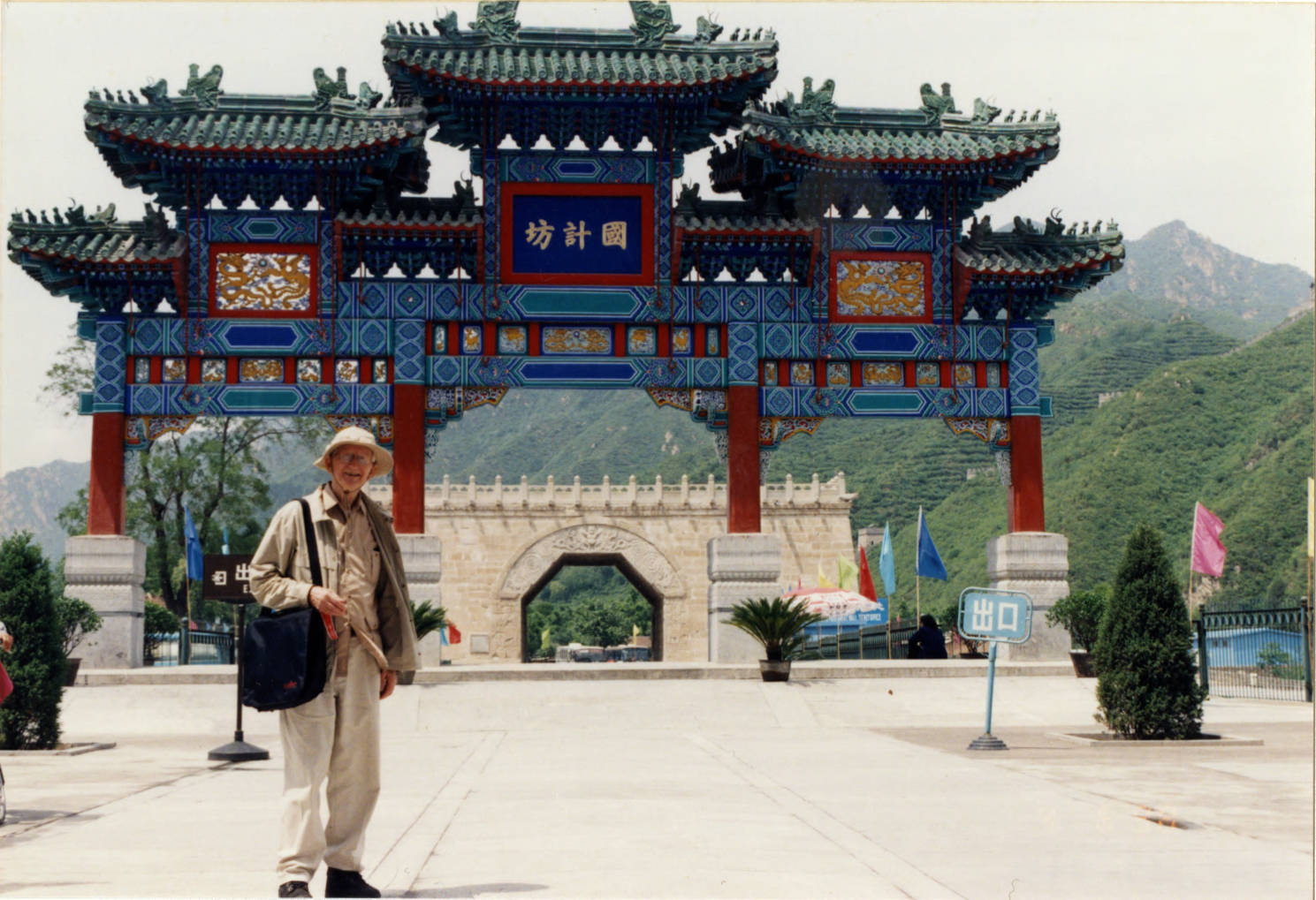 Atle Selberg standing at an unidentified location (likely Juyong Pass in Beijing) in China. During Selberg's trip to that country in 1998, he visited Hong Kong, Beijing, Shandong, and Xian. One of a series of images taken during a 1998 trip by Selberg to China.
