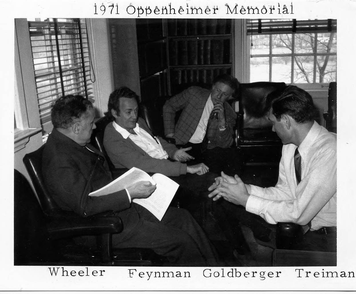 4. John Wheeler, Richard Feynman, Marvin Goldberger, Sam Treiman - seated