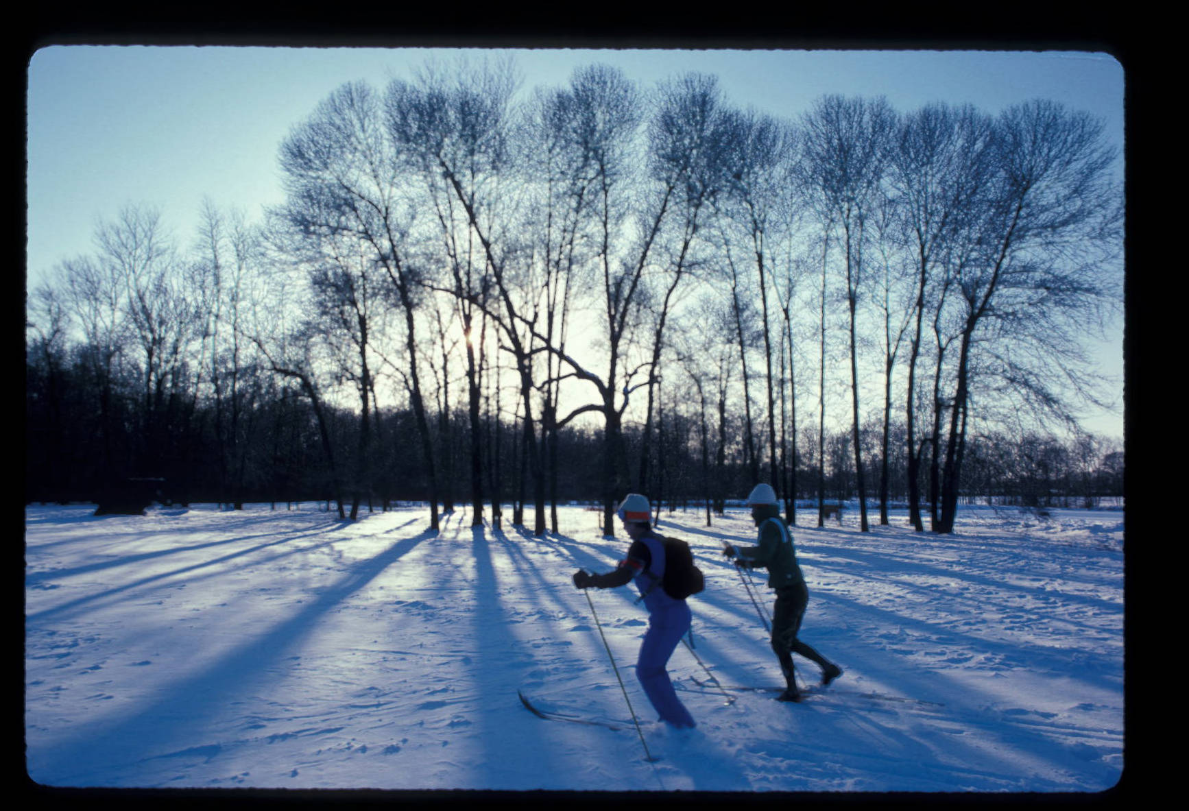 Institute pond and cross country skiers