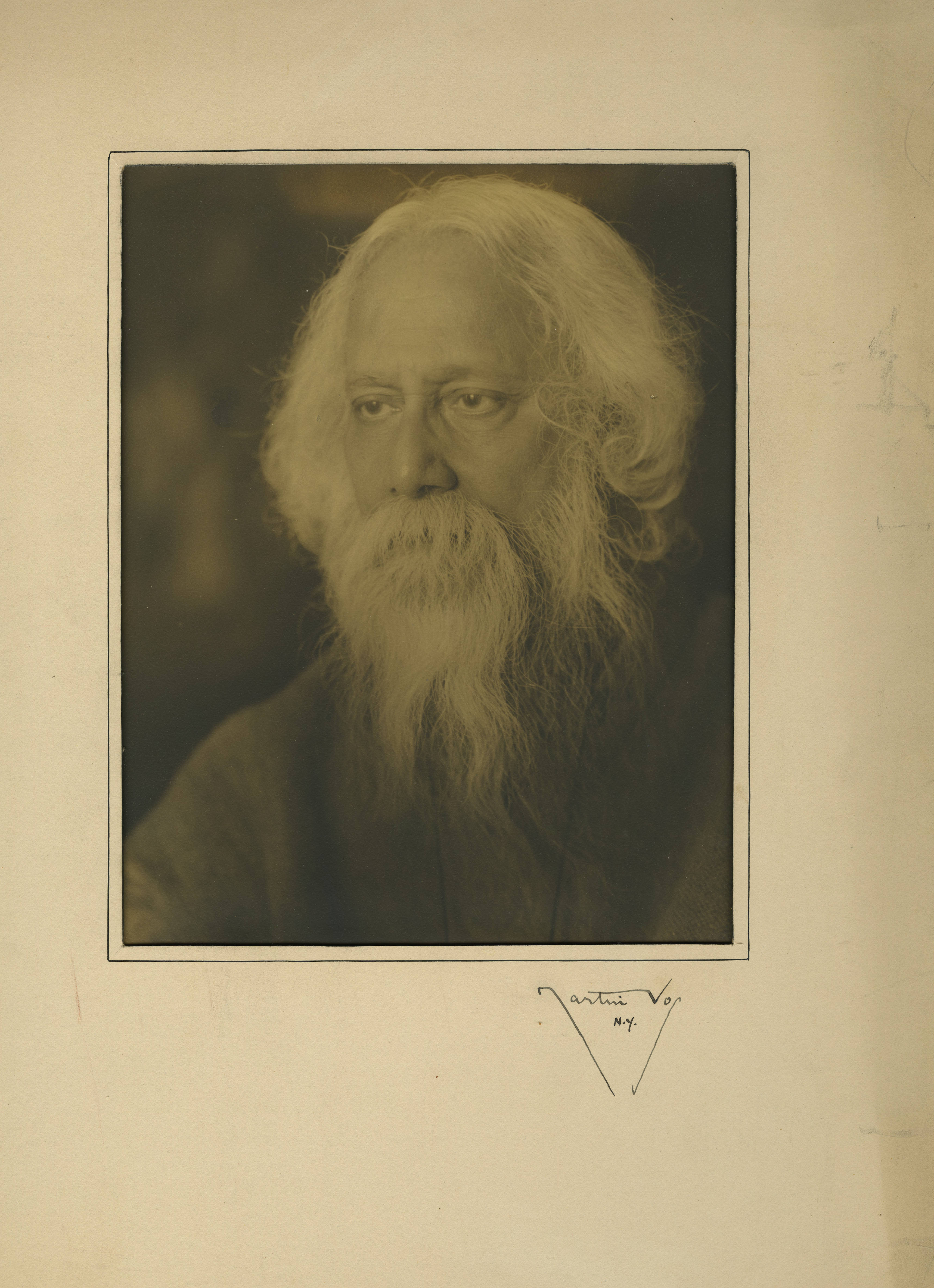 This formal portrait of Rabindranath Tagore appears to be a companion piece to two other photographs in the collection taken on the same occasion by the same photographer. EB 189 is of Einstein alone and EB 190 is of Einstein and Tagore