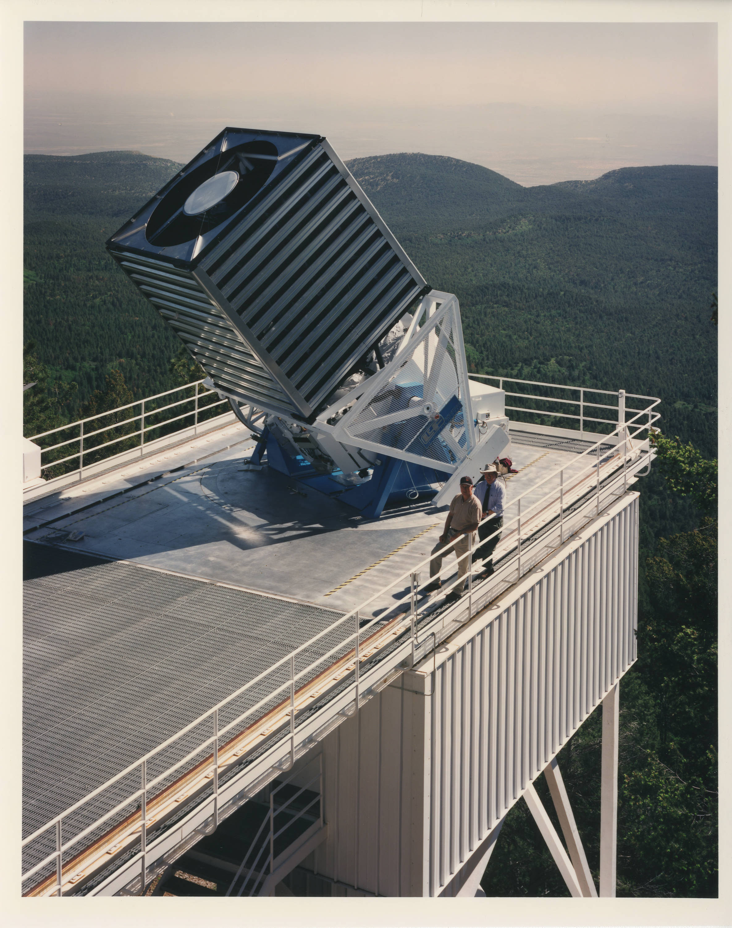 The Institute for Advanced Study was one of the institutional sponsors of the Sloan Digital Sky Survey. Per the caption of the back of this print, "The 2.5-meter reflecting telescope of the Sloan Digital Sky Survey. The box-like structure protects the separately mounted telescope from being buffeted by the wind."