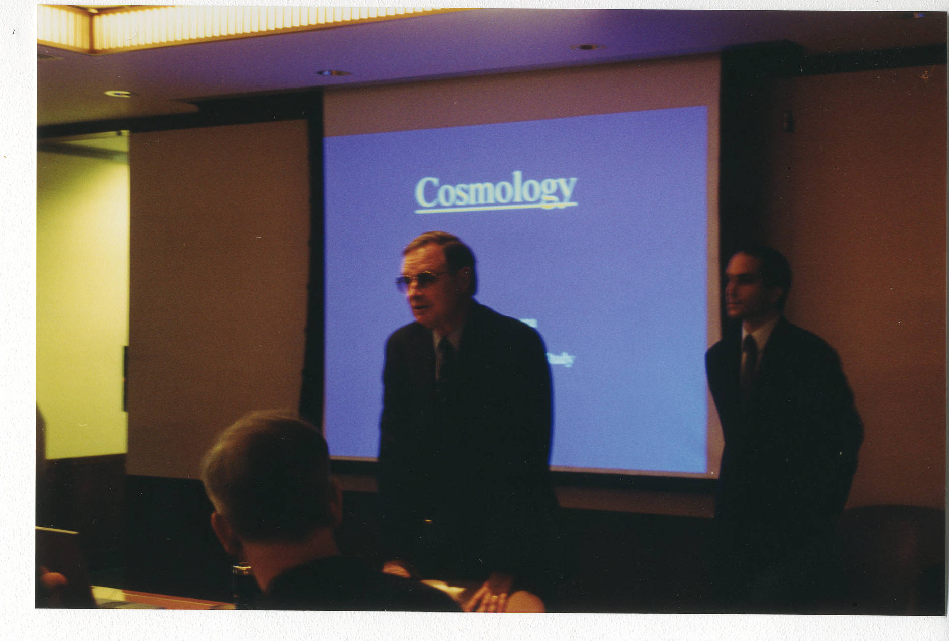 IAS Director Phillip Griffiths and Juan Maldacena at an unidentified event attended by IAS affiliates including Trustees, Faculty, and Staff featuring Maldacena, School of Natural Sciences Faculty member, as the speaker.