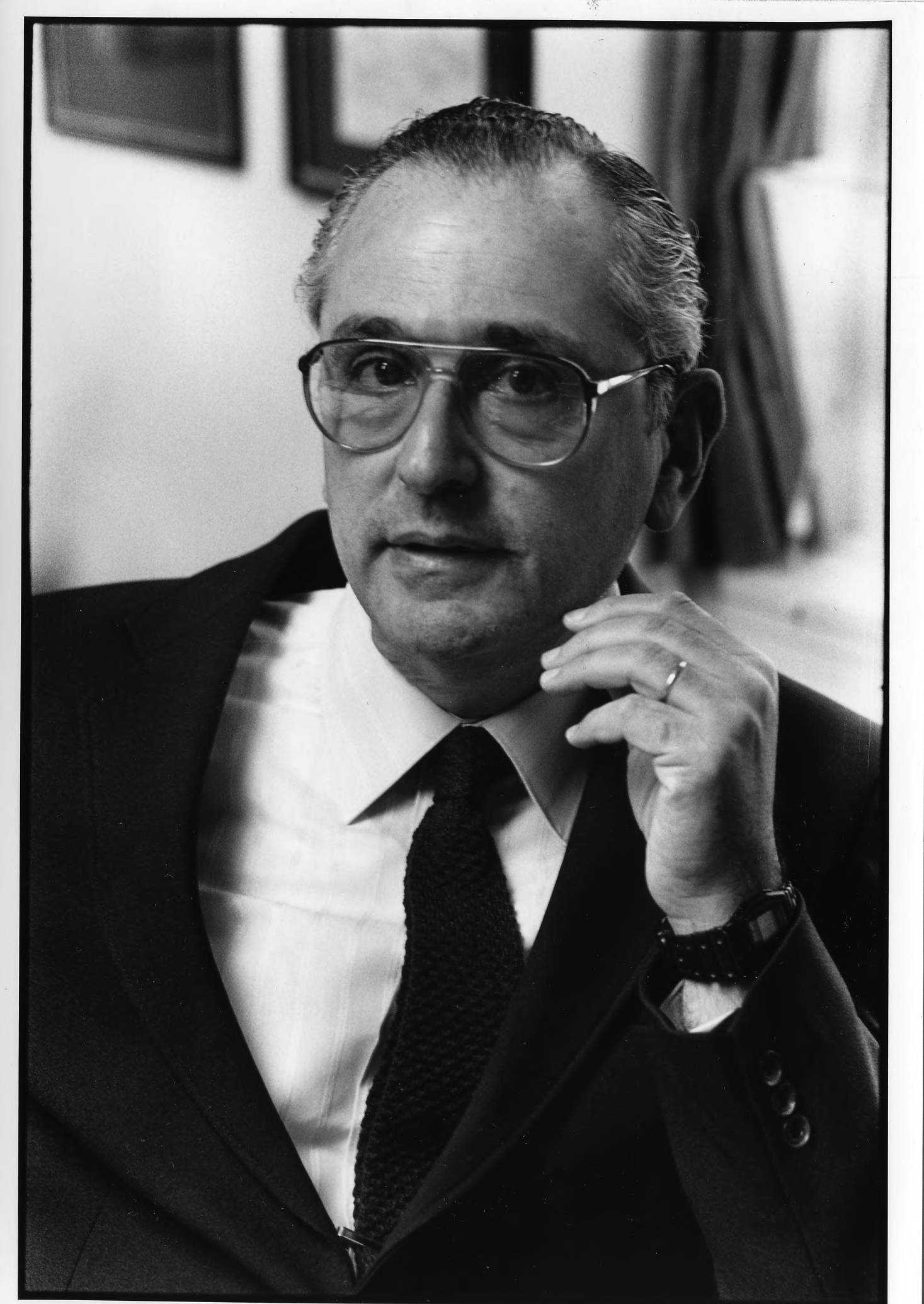 School of Natural Sciences Faculty member John Bahcall. One of a series of five images in the collection taken on the same occasion. This photograph was one of the images on display in Professor Bahcall's office on the Institute for Advanced Study campus.