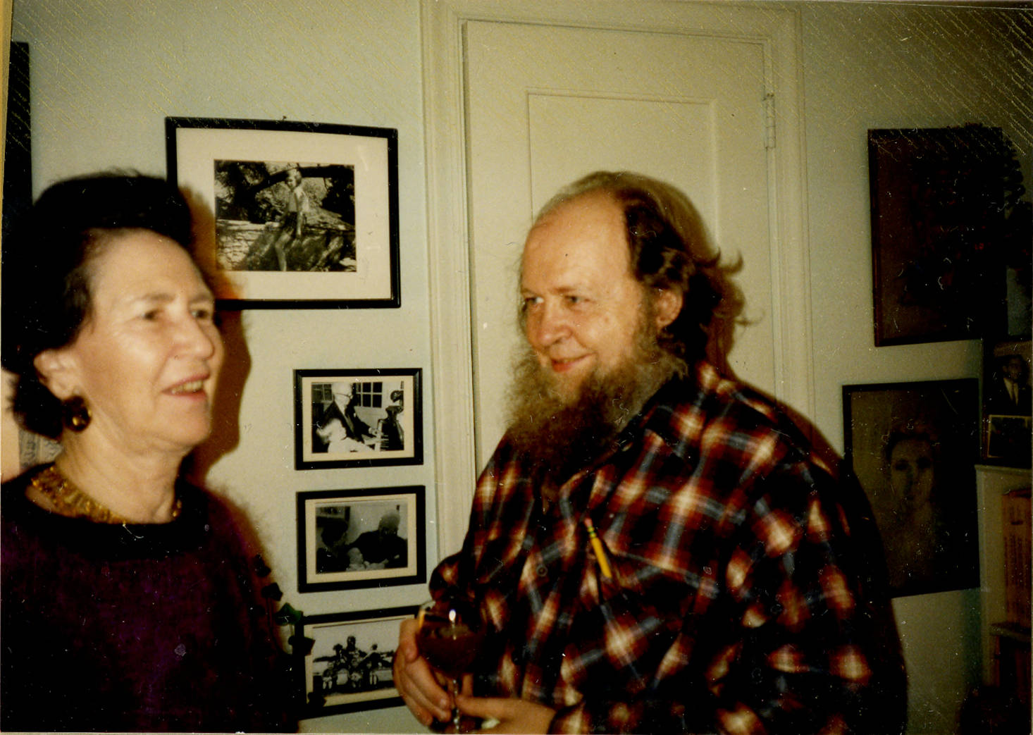Hedi Selberg (l.) and guest lecturer Adrien Douady attend a party at Louise Morse's after the first of three lectures on the topic of holomorphic surgery presented by Douady for the Twelfth Marston Morse Lectures.