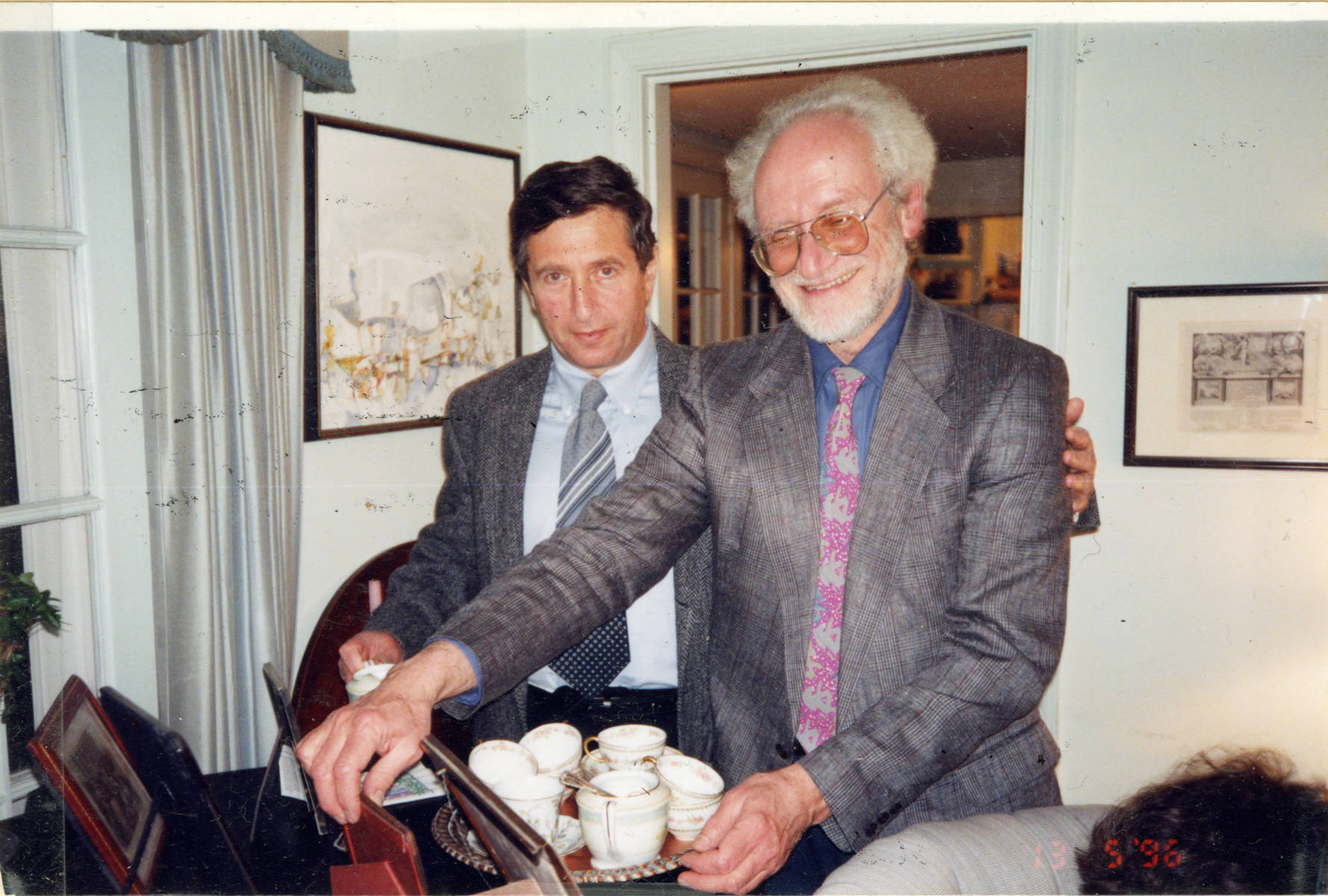 Attending a social gathering hosted by Louise Morse are Yasha Stein (l.) and William Browder.