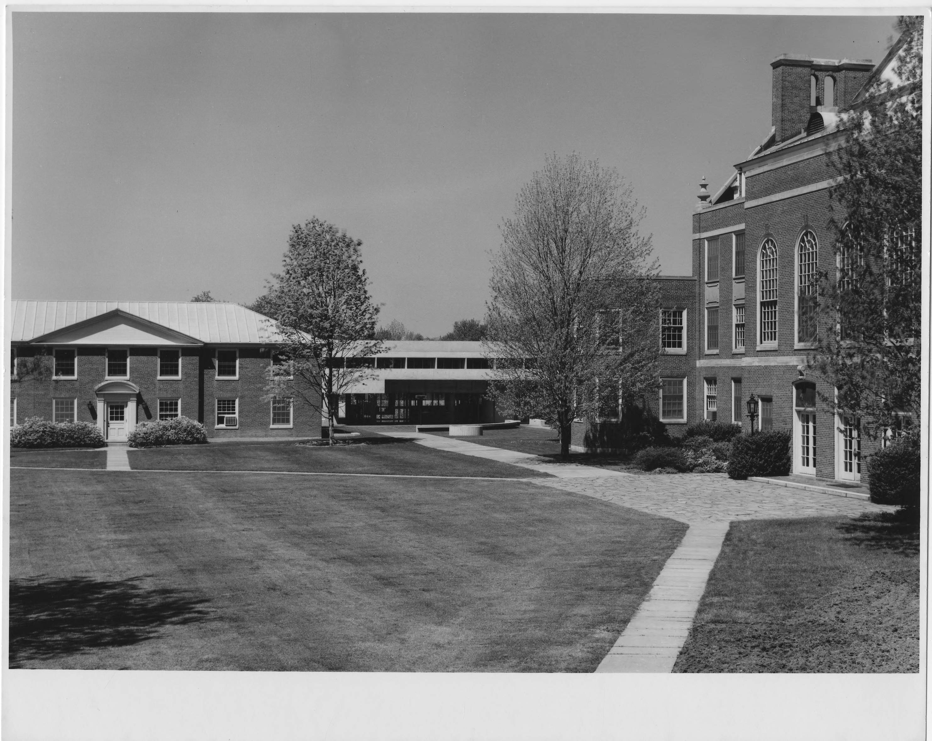 Back view of Institute from Math building (Building C). Fuld Hall, Building D, and the Dining Hall are visible.