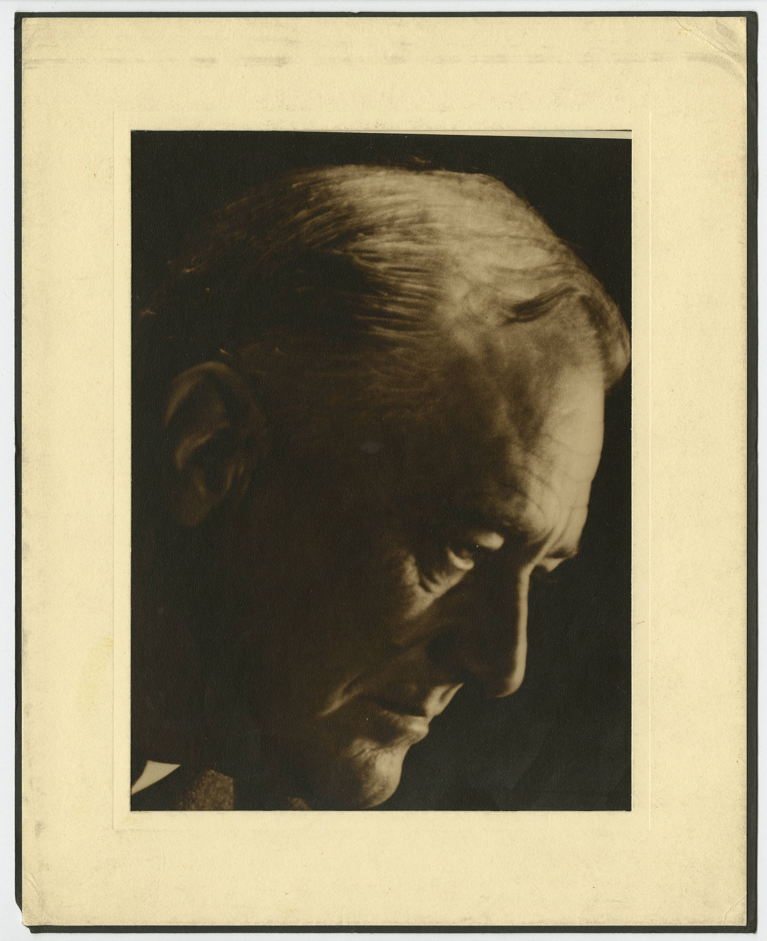 This formal portrait of Franklin D. Roosevelt is taped between mat board and paper. (Also, see EB 197, EB 198, and EB 210, which are all by the same photographer.)