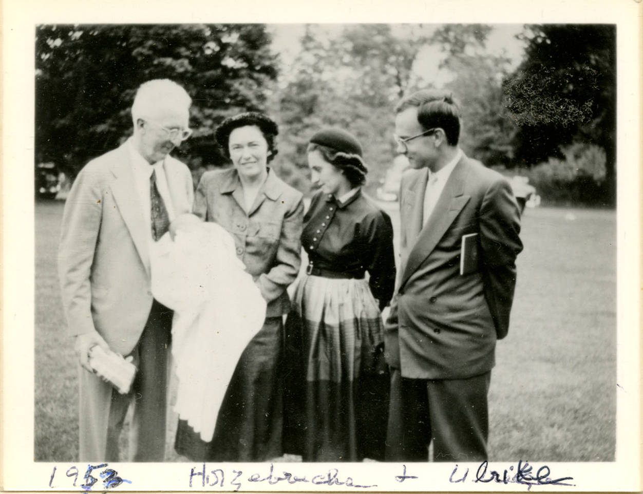 From left to right: Marston Morse, Louise Morse holding Ulrike Hirzebruch, and Inge and Fritz Hirzebruch
