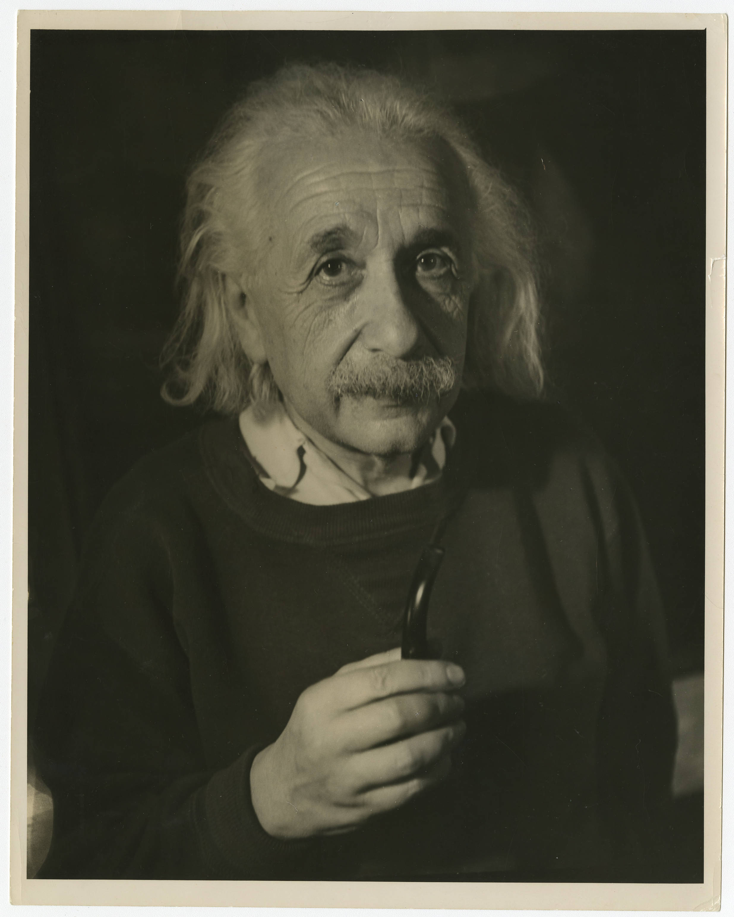 Formal portrait of Albert Einstein taken by Trude Fleischmann.