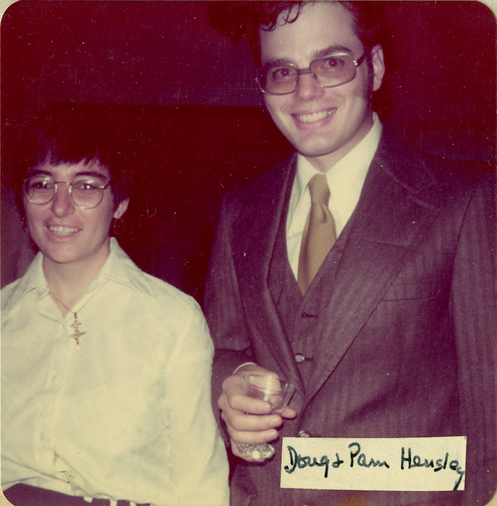 Attending a social gathering at the home of Louise and Marston Morse are Pamela and Douglas A. Hensley. Most of those attending this event are affiliated with the Institute's School of Mathematics.