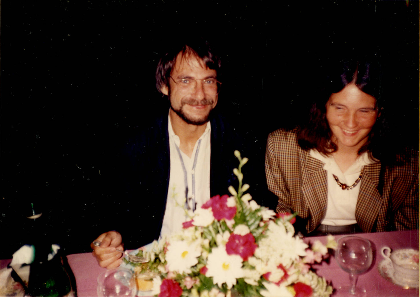 Wolfgang Schmickler and Ulricke Schmickler-Hirzebruch, one of the daughters of the guests of honor, attend a dinner hosted by Louise Morse.