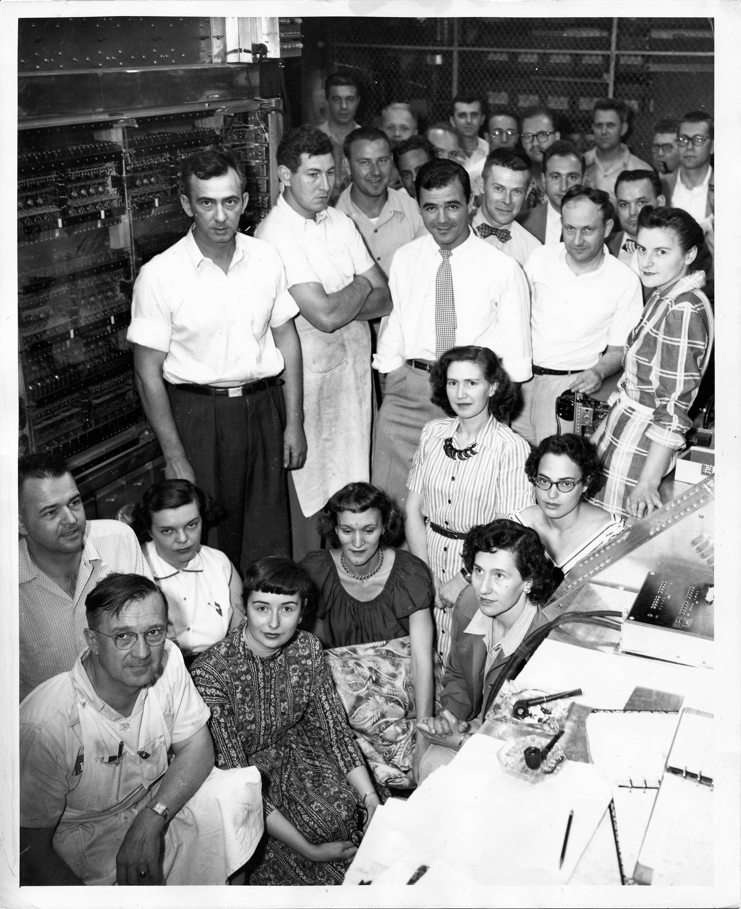 Staff members of the Electronic Computer Project, including Lambert Rockefellow, Elizabeth C. Wooden, Norma Gilbarg, Hedvig Selberg, Frank E. Fell, Hewitt Crane, Richard W. Melville, Ephraim H. Frei, Margaret Lambe, Peter Panagos, Gordon Kent, Norman Phillips, Herman Goldstine, James Pomerene, Julian Bigelow, and Gerald Estrin.