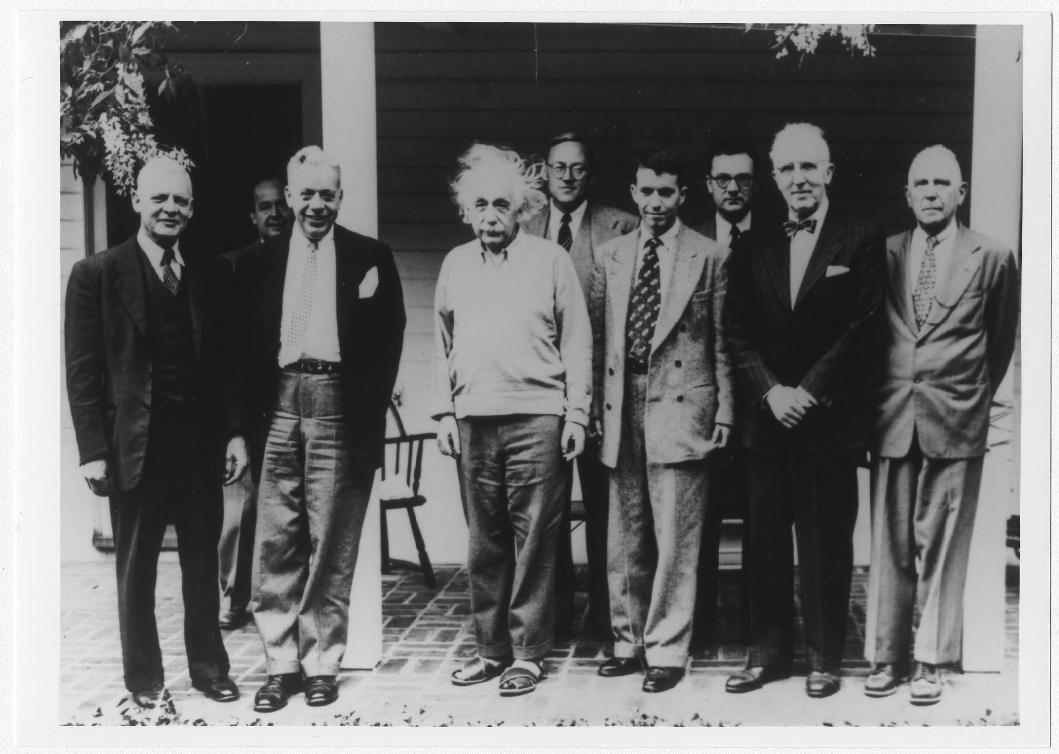Albert Einstein with John von Neumann (in background), Marston Morse, and others