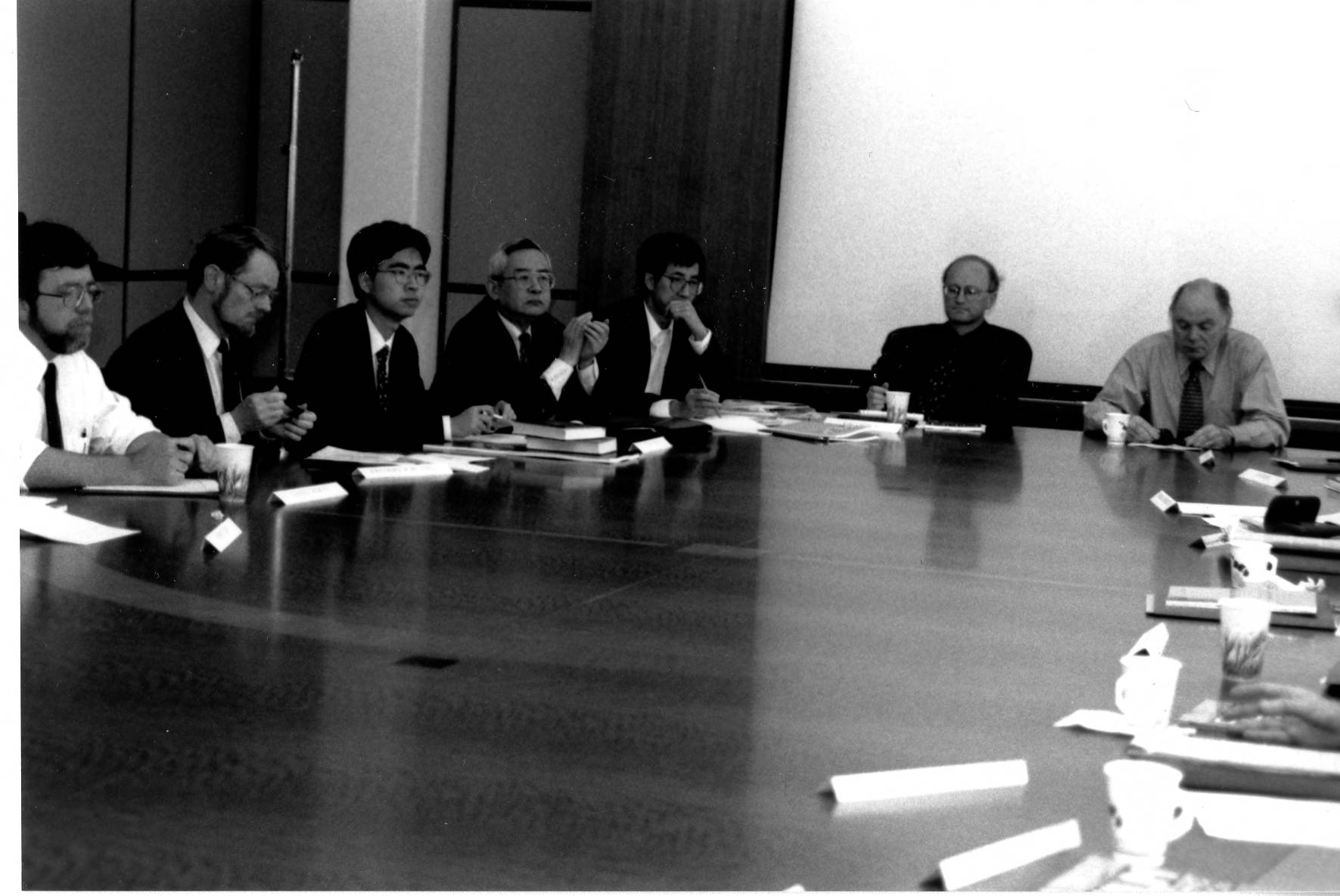 In the White-Levy Room on the Institute for Advanced Study campus, one of the sessions of the June 9-10, 1994, seminar entitled "Force in History." The seminar, supported by the School of Historical Studies (SHS), was chaired and moderated by SHS Faculty member Peter Paret, who is at the head of the table on the right.