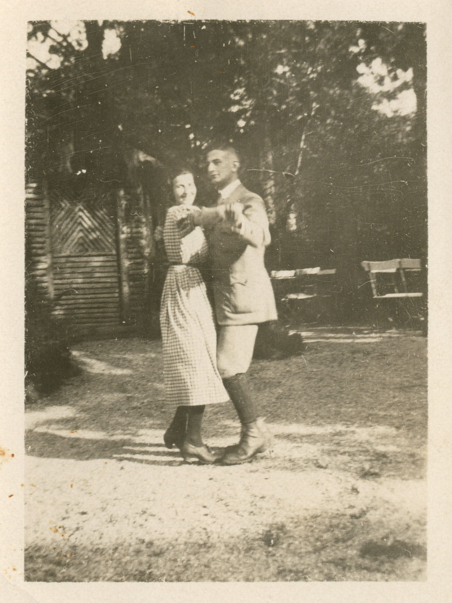 Helen Dukas dancing with unidentified man in Hinterzarten, Germany