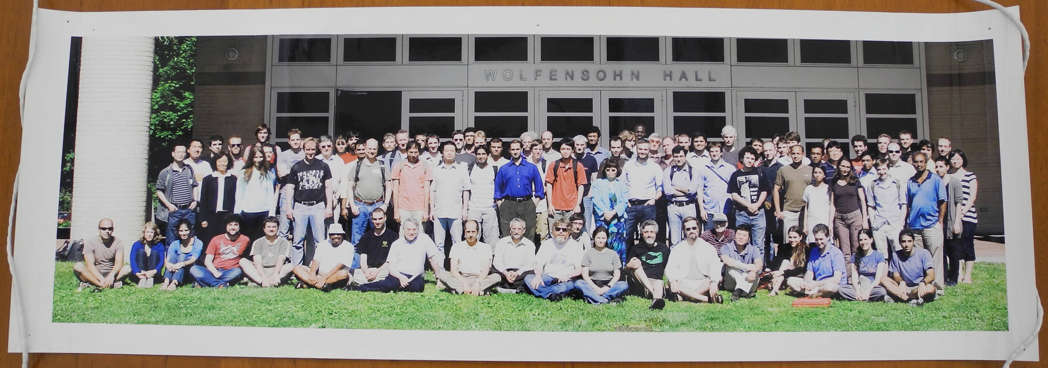 Taken in front of Wolfensohn Hall on the Institute campus, group photograph of attendees to the Pseudorandomness in Mathematics and Computer Science Mini-Workshop. School of Mathematics Faculty member Avi Wigderson is seated eighth from the right.