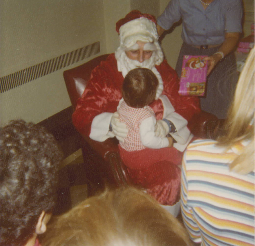 Santa Claus presents gifts to Institute for Advanced Study children in the Common Room of Fuld Hall