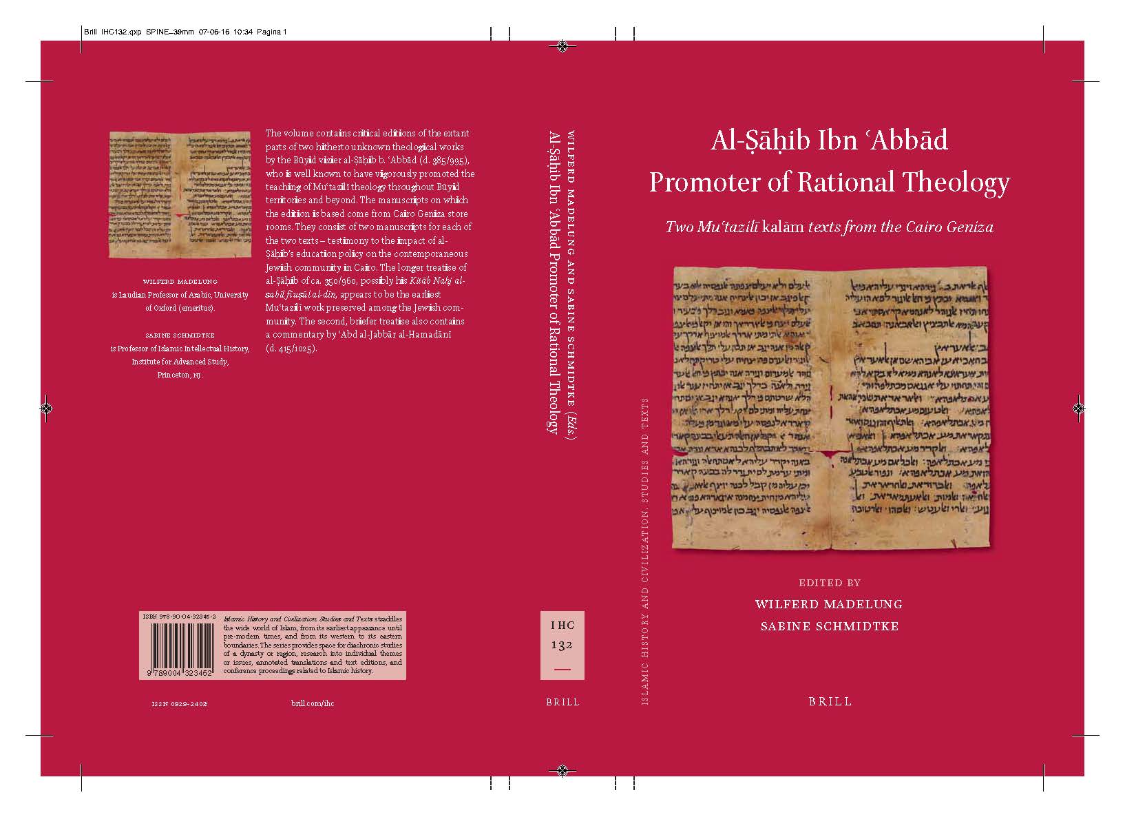 Wilferd Madelung and Sabine Schmidtke, Al-Ṣāḥib Ibn ʿAbbād Promoter of Rational Theology: Two Muʿtazilī Kalām Texts from the Cairo Geniza. Leiden: Brill, 2016 (Islamic History and Civilization. Studies and Texts; 132)